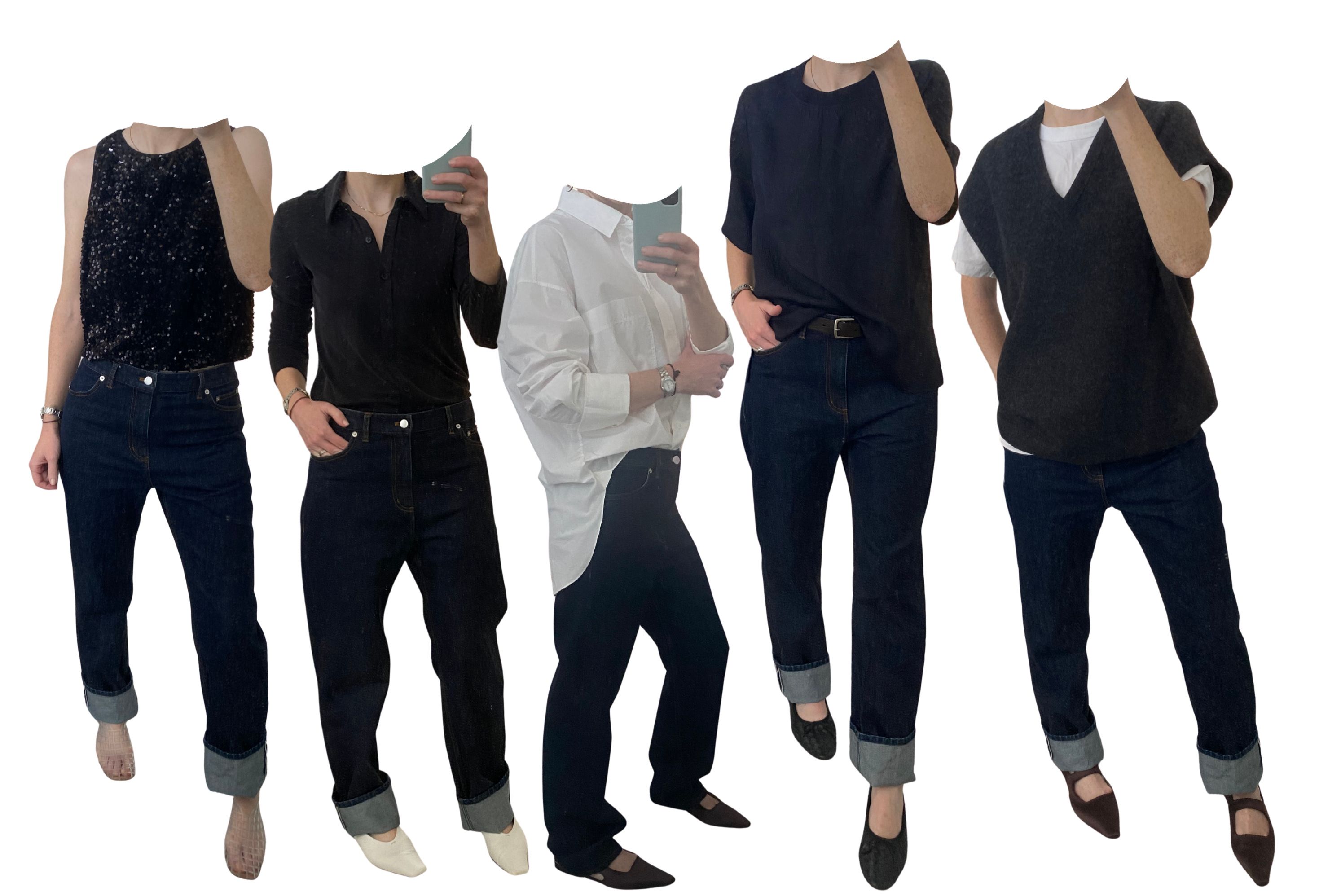 Among them, the 2024 Tibi Alec jeans. Despite the name, they were more trouser than jean, and an absolute no-go on my pear-ish frame. The Aussie Henne Valentina jeans were flattering but uncomfortable, plus I didn’t love the blue wash. I tried the black too but returned them—I wanted jeans I’d reach for, even when working from home, not jeans I’m desperate to rip off my body. Mango’s Danila and Cos’ column jeans were in the mix too—both offered reliable fits, no splurge required.